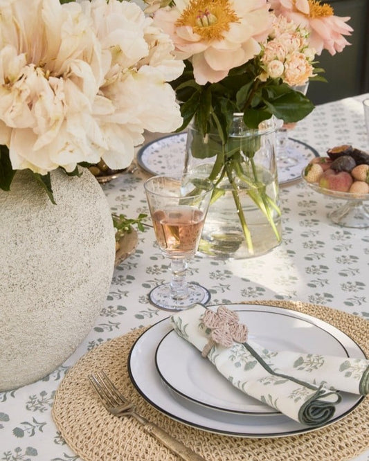 Serviett i økologisk bomull med blomstertrykk