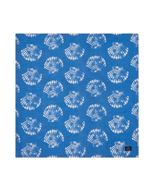 Serviett i økologisk bomull med skalltrykk - blå/hvit