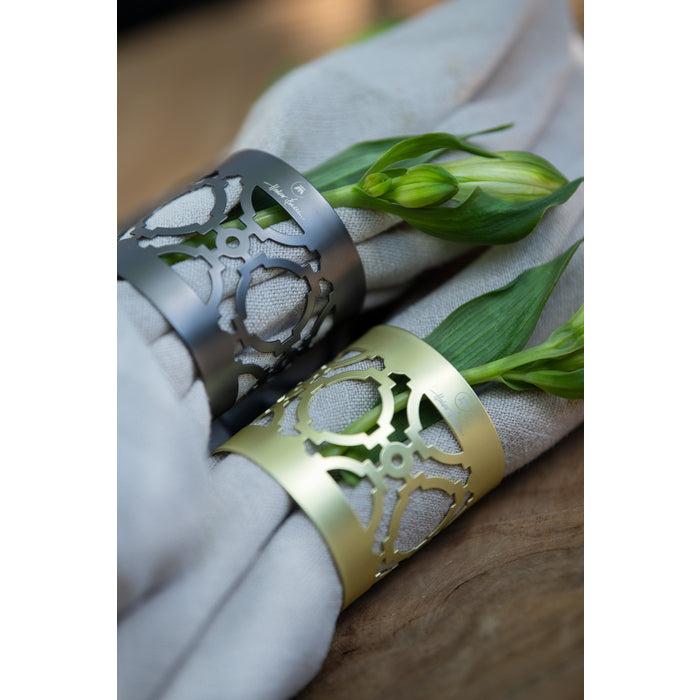 Cape serviettring 4 stk champagne fra Magnor. Denne serviettringen i matt champagne, er formgitt av interiørdesigneren og tv-profilen Halvor Bakke. Inspirasjonen har han hentet fra sine reiser til Cape Town i Sør-Afrika. CAPE serviettringer er hverdagsluksus på sitt aller beste! Det innbyr til luksuriøse dekninger, enten det er til høytidelige anledninger eller hyggelig hjemmekos. Passer godt til Cape serviettene i samme serie.