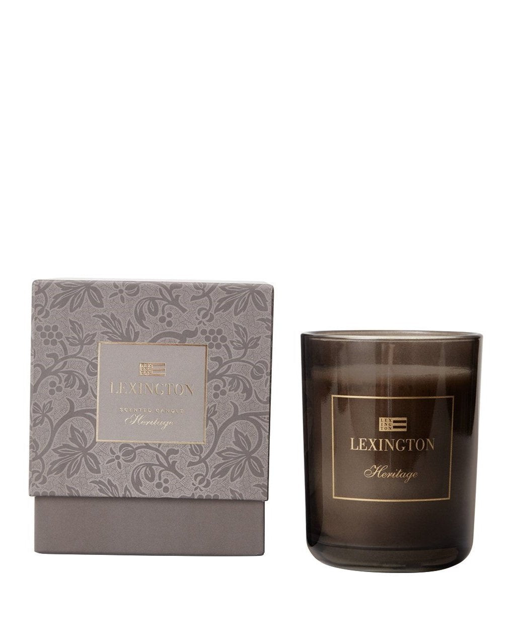 Scented Candle Heritage fra Lexington. Dette duftlyset gir hjemmet ditt en varm og koselig duft av rav med deilige toppnoter av nellik og kanel. Den er laget av 100 % soyavoks fra soyabønner, en fornybar ressurs som er giftfri og biologisk nedbrytbar. Duftlyset kommer i en elegant glasskrukke og pakkes i en luksuriøs papirboks som er perfekt som gave.