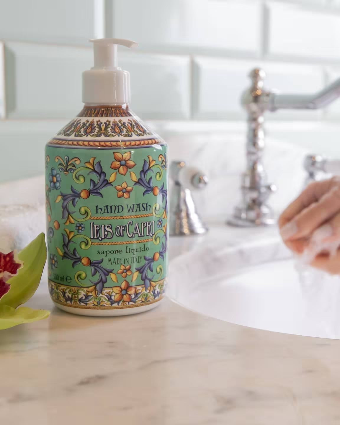 Iris of Capri håndsåpe fra Rudy Profumi er en herlig flytende såpe beriket med Aloe Vera juice og Vit E for ekstra fuktighet og næring til huden. Motvirker tørr hud, holder den myk, og etterlater en nydelig frisk duft av vårblomster med et hint av Liljekonvall. Italiensk luksus på sitt beste!
