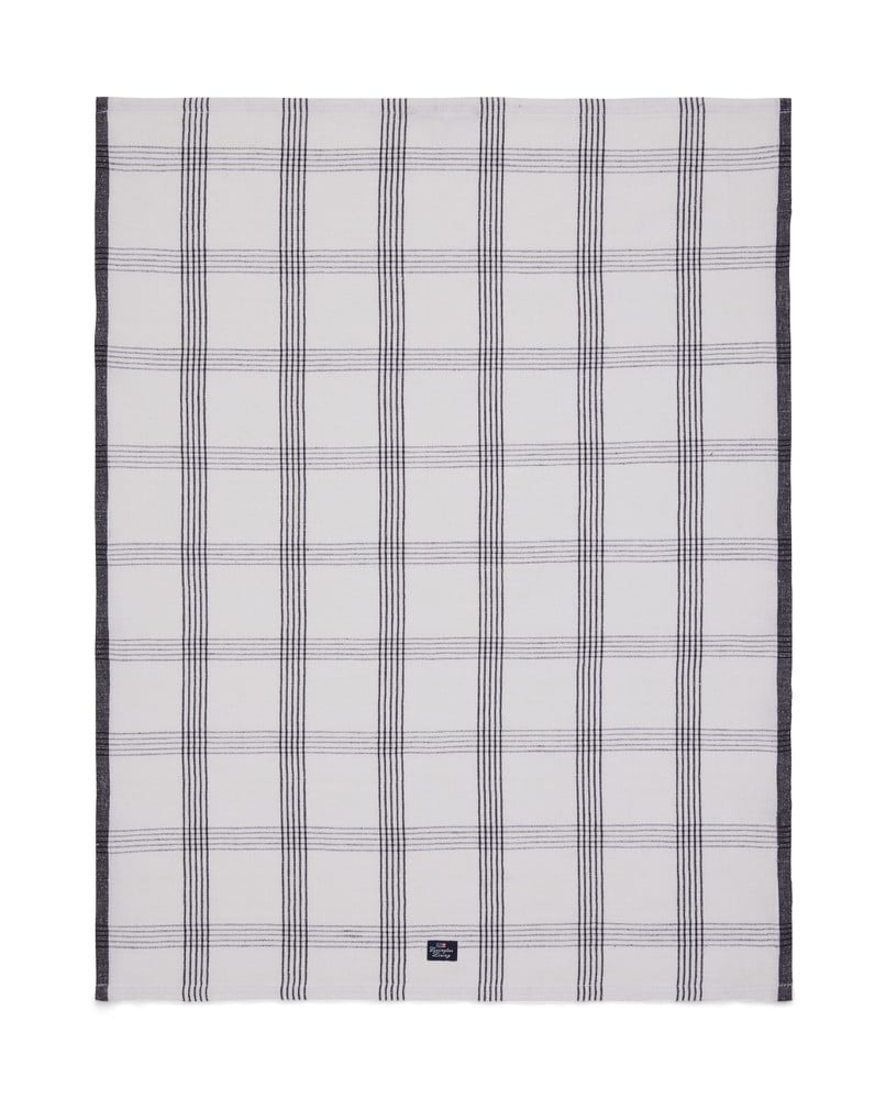 Checked Linen/Cotton kjøkkenhåndkle. Oppgrader kjøkkenet ditt med dette rutete lin/bomull kjøkkenhåndkle, en perfekt blanding av stil og funksjonalitet. Det garnfargede rutemønsteret skaper et tidløst utseende som kompletterer enhver kjøkkendekor, mens den førsteklasses lin-bomullsblandingen gir utmerket absorberingsevne og rask tørking. Forvasket for umiddelbar mykhet, føles dette håndkleet luksuriøst helt fra første bruk. Gjennomtenkte detaljer som brettede kanter sikrer holdbarhet, og den praktiske logohengeren gjør oppbevaring enkelt.