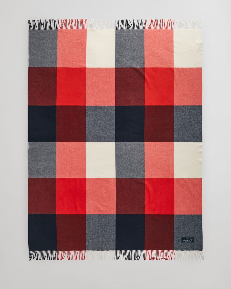 Extra fine merino wool check pledd fra GANT. Laget av ekstra fin merinoull, gir dette pleddet et teksturert og koselig preg til ethvert rom. Den er mønstret i ruter og har frynsede kanter og en vevd GANT-etikett nederst i hjørnet.